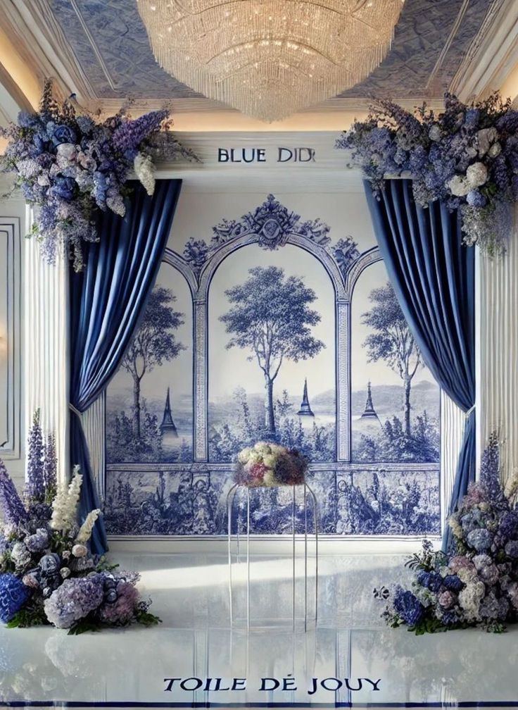 Floral Arch with Roses and Draping Fabric design